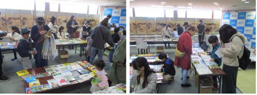 当日は、来場者が家庭にある読まなくなった絵本と会場に並べられているリサイクル絵本とを交換し、新たな絵本との出会いを楽しんでいました。